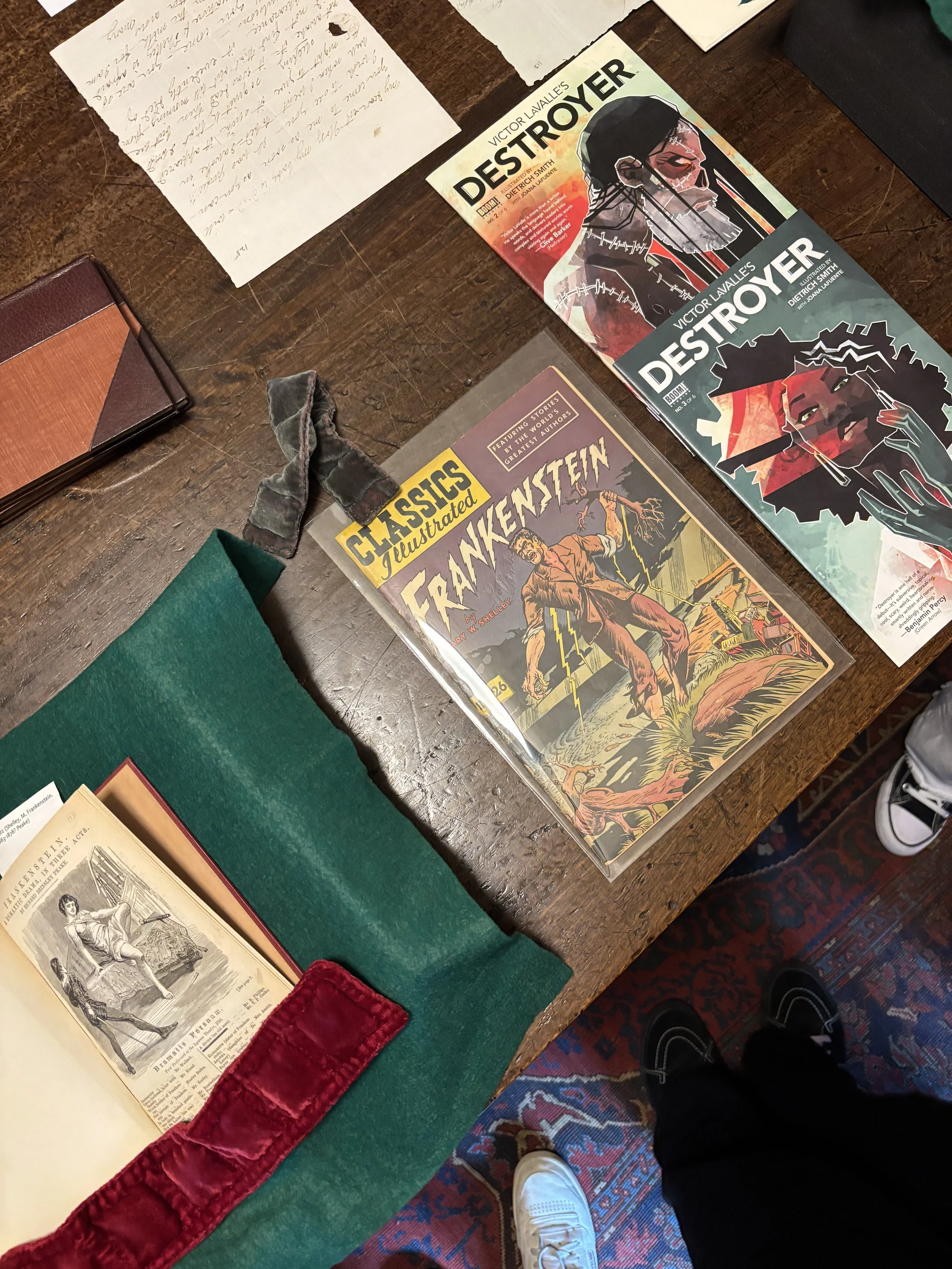As I read Frankenstein after visiting the Shelley exhibit, I became more aware of a captivating paradox in Mary Shelley’s work. She critiqued the erasure of women and the dangers of patriarchal science, yet her own creative process seemed to depend on male approval and collaboration.